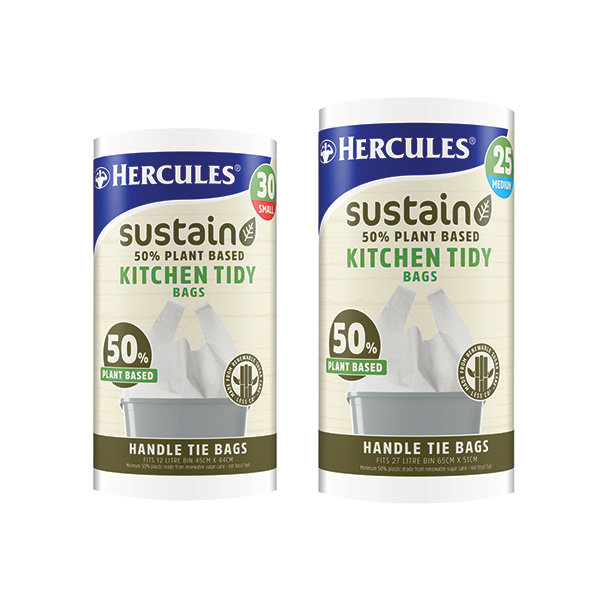 After a more sustainable option? Choose Hercules Sustain. Hercules Sustain household products offer you and your family a more sustainable choice for many of your everyday needs. From resealable snack and sandwich bags to kitchen tidy bags and gloves, Hercules Sustain products are a great choice for you, your family and our environment.