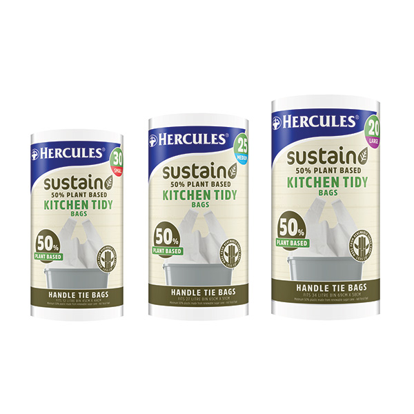 Looking for a more sustainable option? Choose Hercules Sustain a range of household products offering a better choice for you, your family and the planet. From Resealable Snack and Sandwich Bags to Kitchen Tidy Bags, Hercules Sustain has a bag for every job.